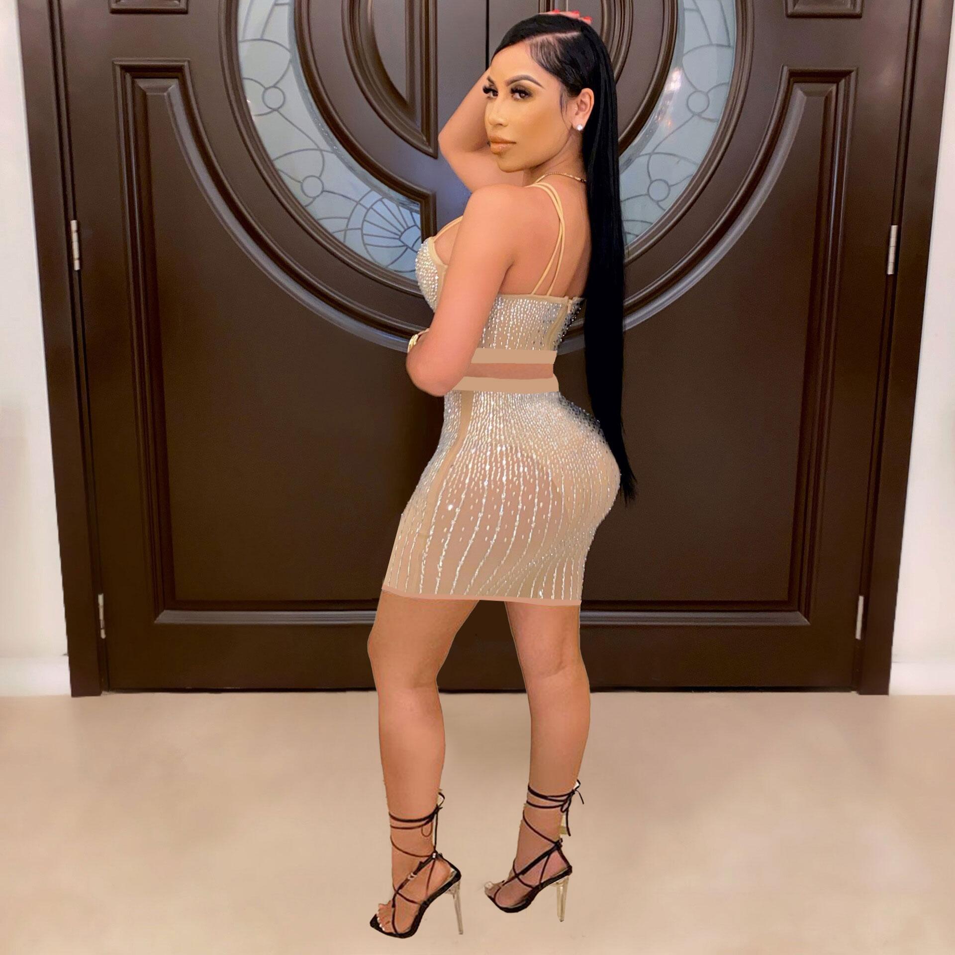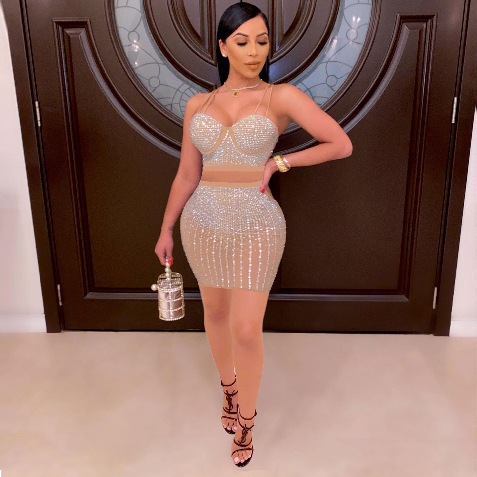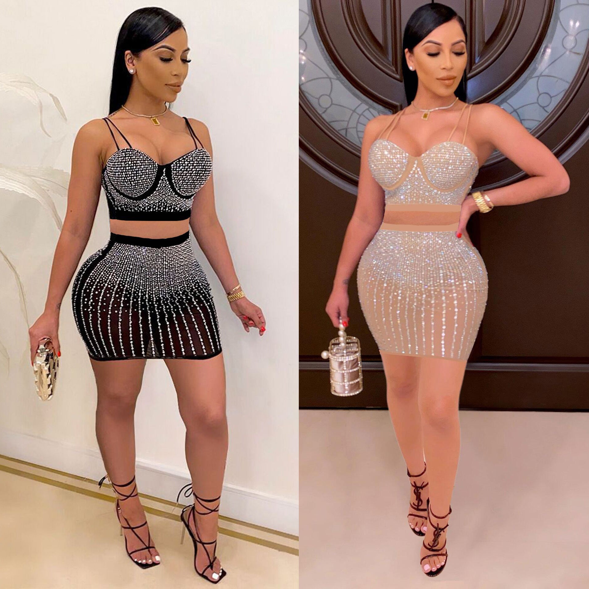 Diamond Encrusted Women's Crop Tank Top + Mini Skirt 2-Piece Set to 3X Plus Size
