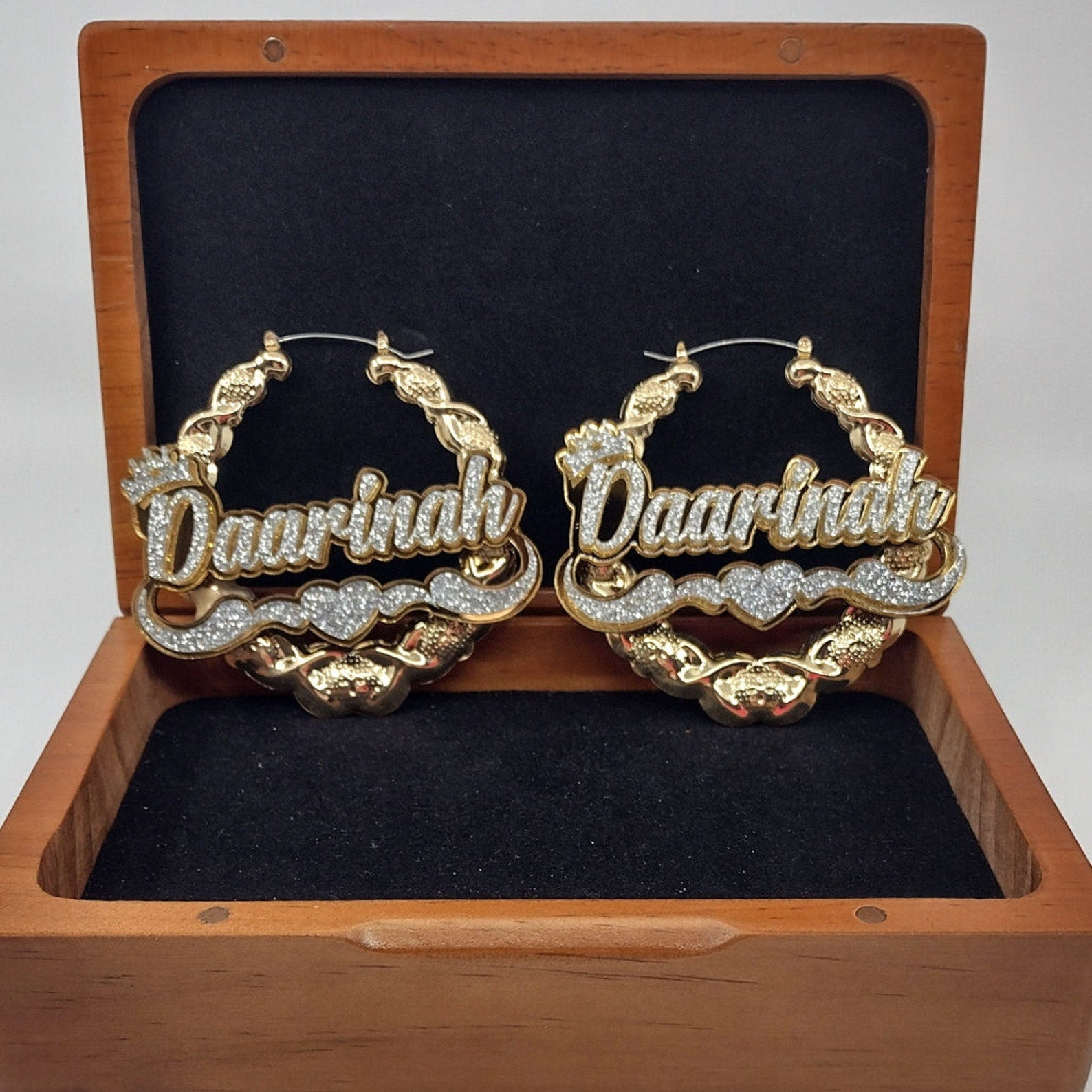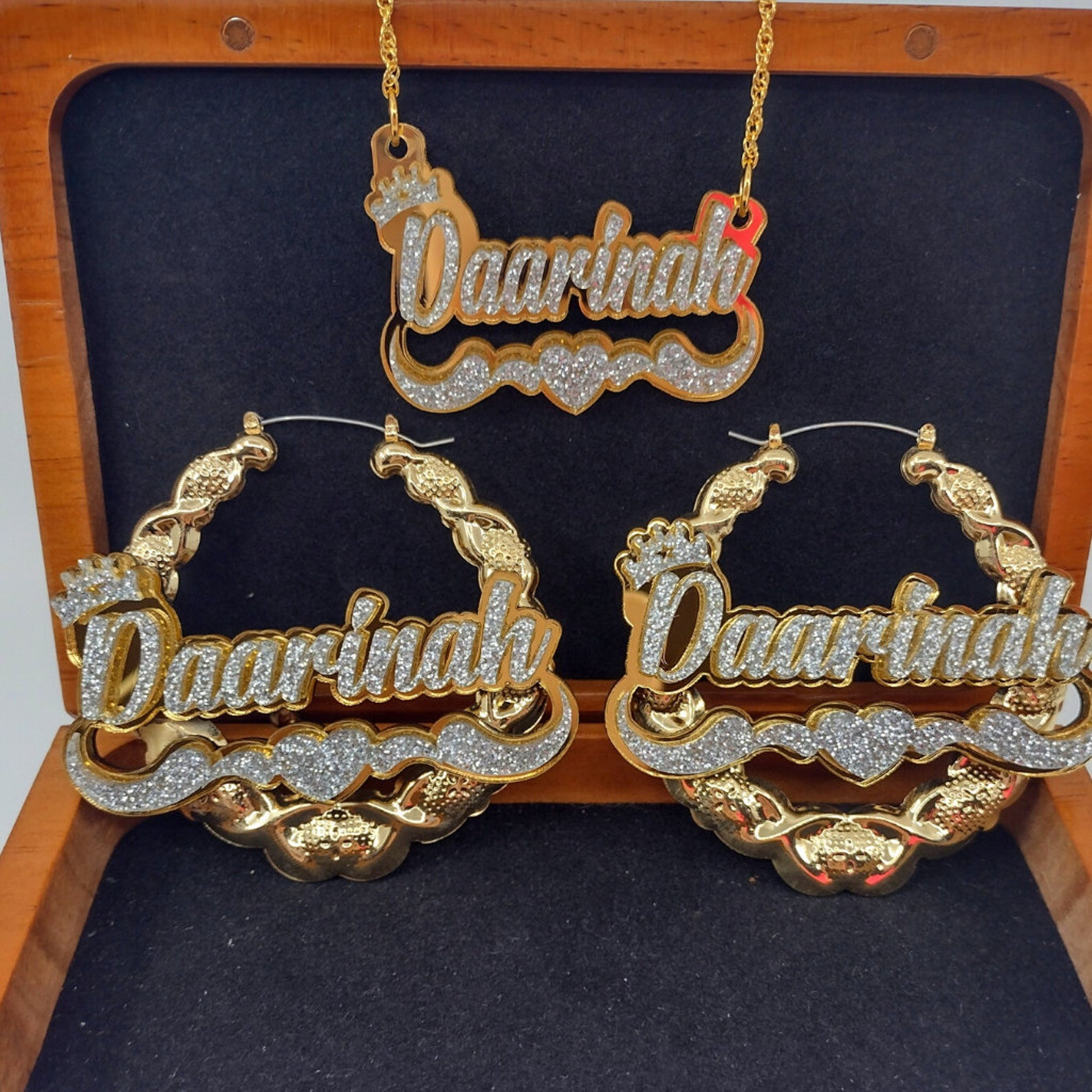 Customized Vintage Hip-Hop Nameplate Chain Necklace + Hoop Earring Set