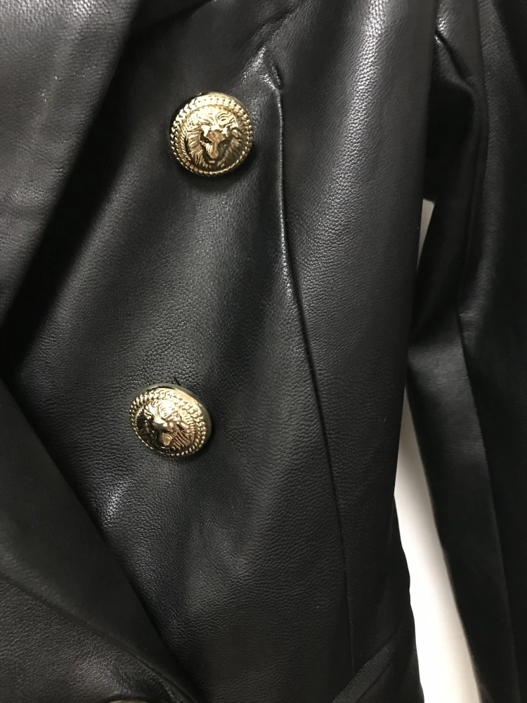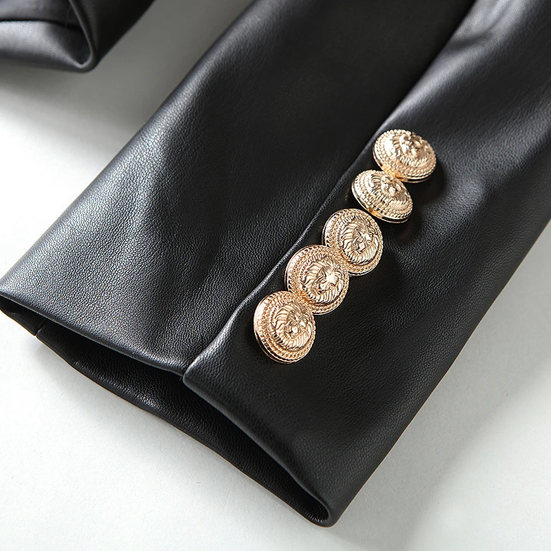 Black Ladies Plus Sized Leather Lion Button Blazer S-3XL
