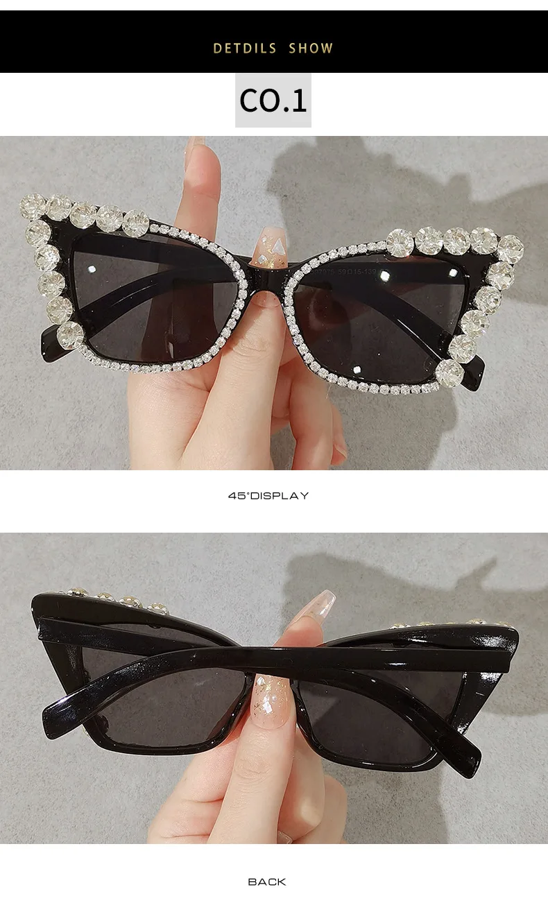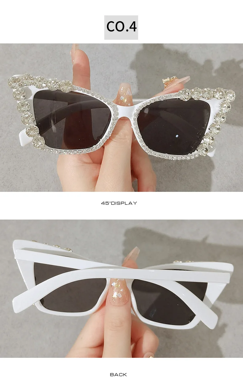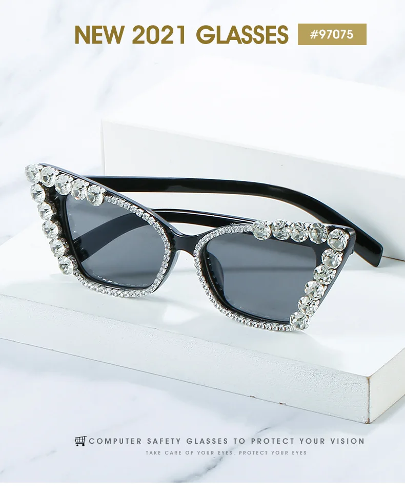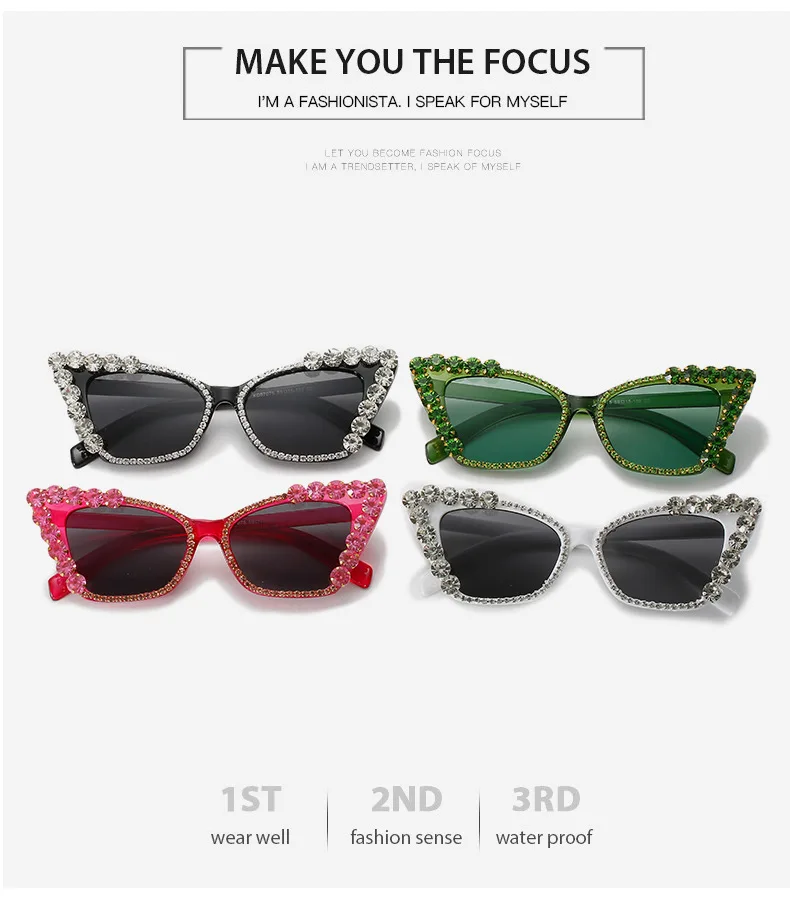 Diamond Cat Eye Vintage Punk Rhinestone Sun Glasses Female Luxury Brand Designer Eyewear UV400