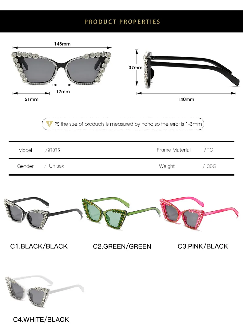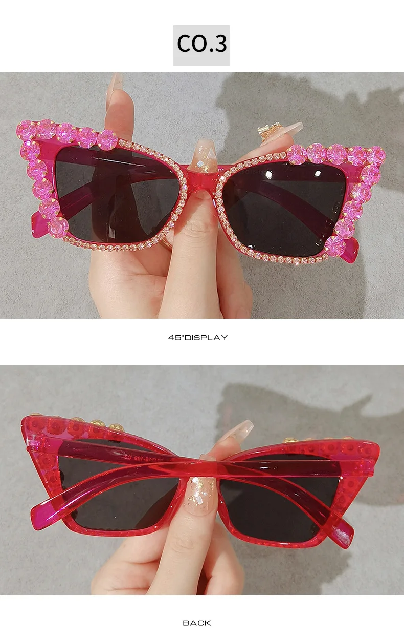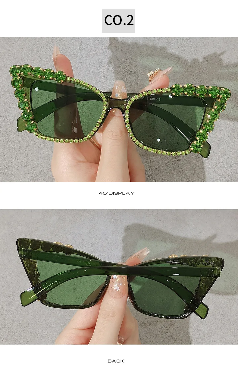 Diamond Cat Eye Vintage Punk Rhinestone Sun Glasses Female Luxury Brand Designer Eyewear UV400