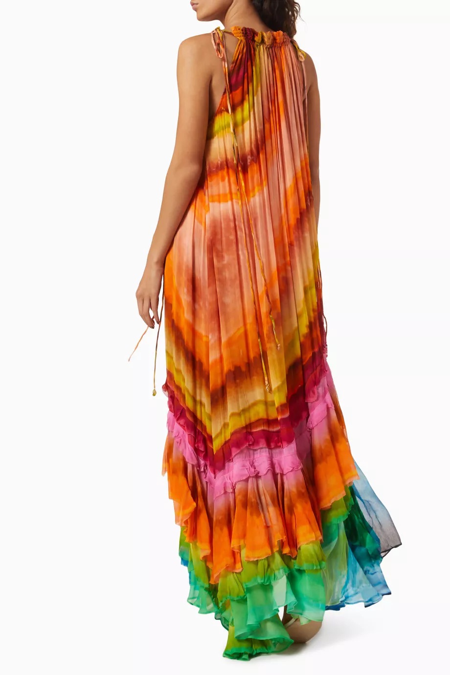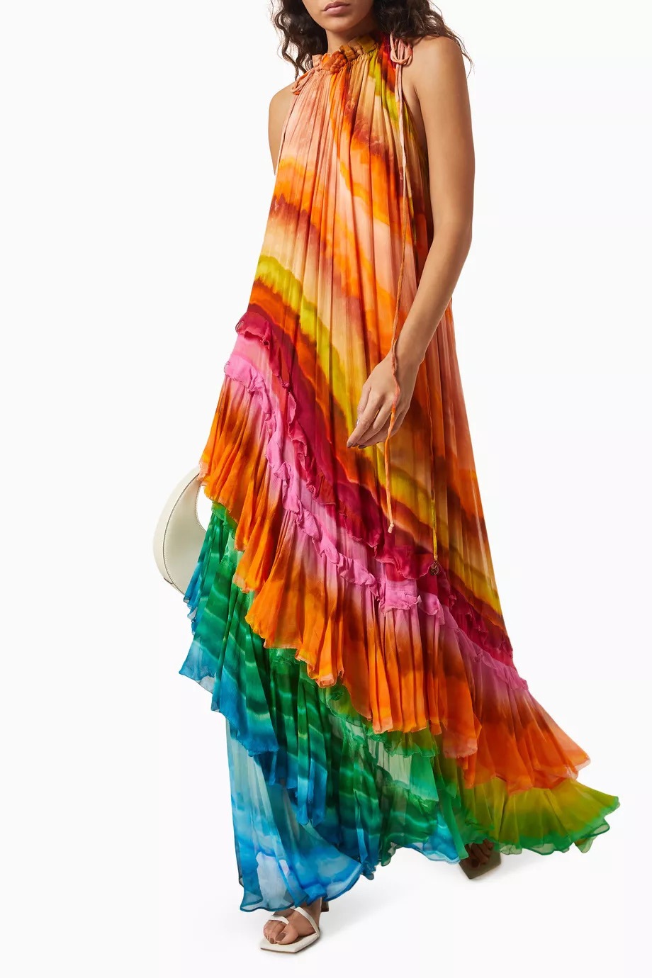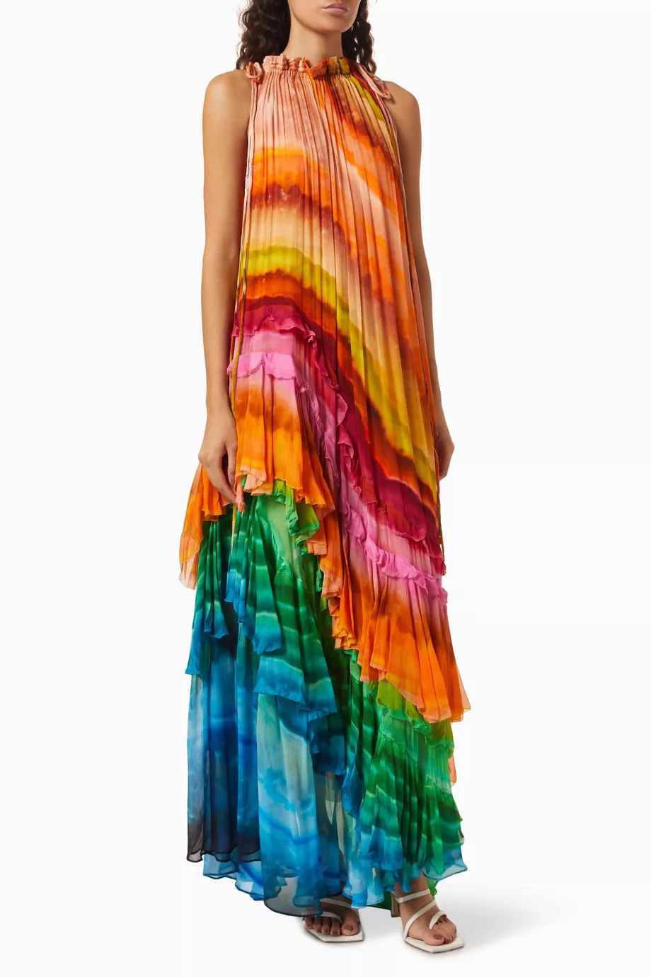 Asymmetrical Striped Colorblock Sleeveless Pleated Maxi Dress