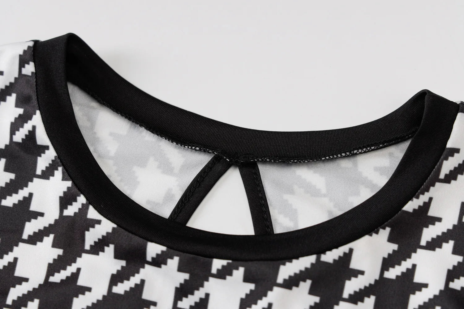 Black/White Houndstooth Print Long Sleeve Bodycon Streetwear Midi Dress