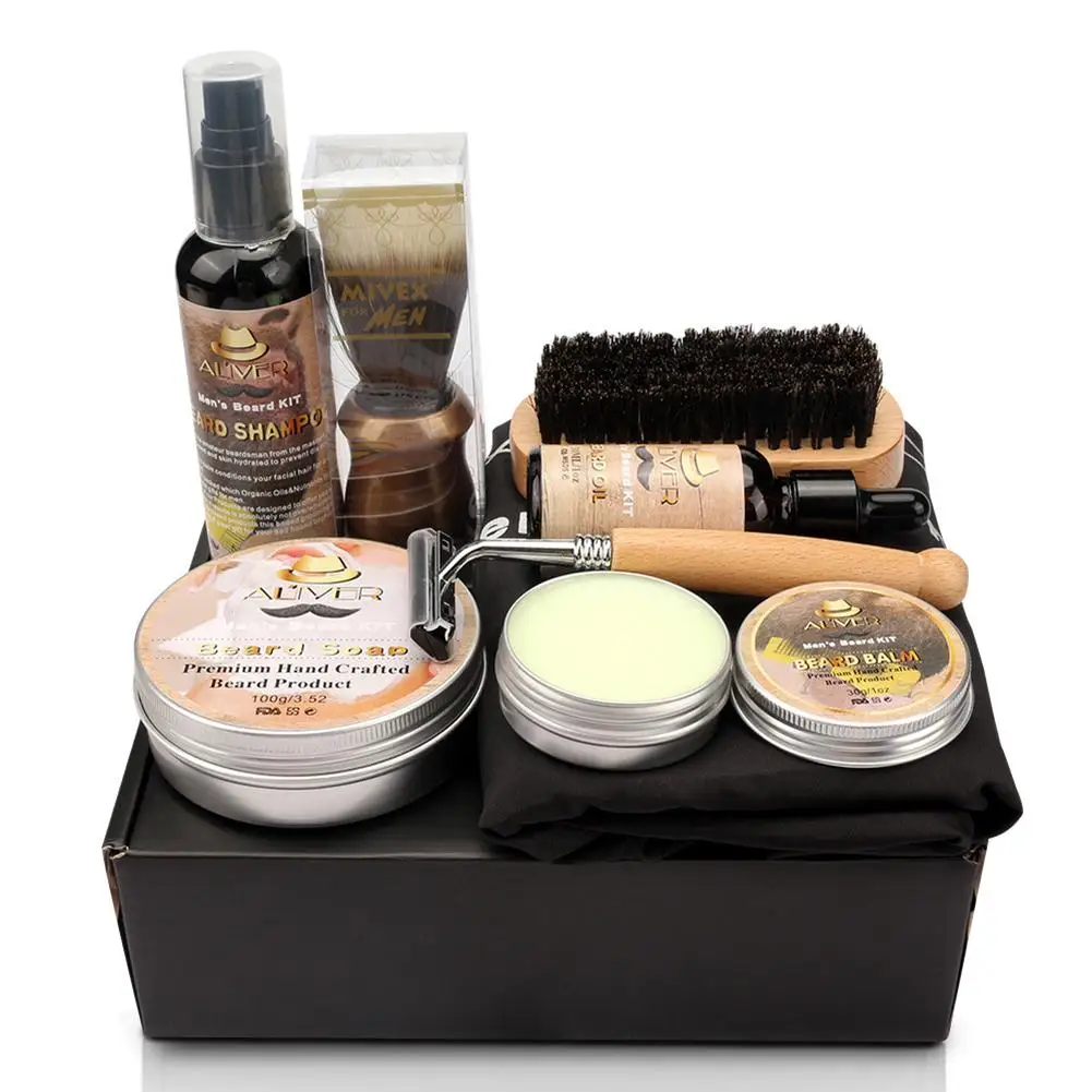 1、9-piece set: You can choose, brush, beard cream, beard oil, shaving foam brush, beard soap, beard cleaning solution, shaver, apron cloth.