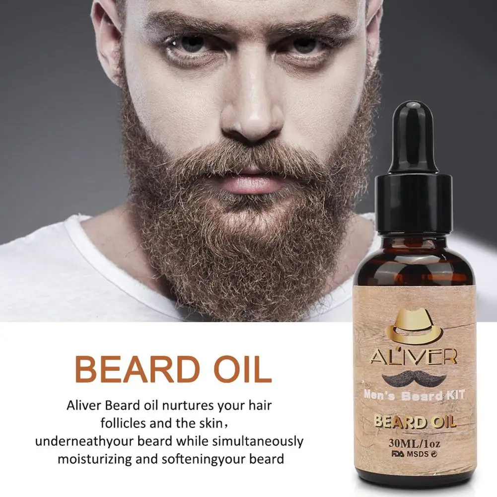Men Beard Kit Styling Tool Beard Essence Oil Comb Brush With Apron Cloth Moustache Balm Moisturizing Wax Styling Beard Care Set