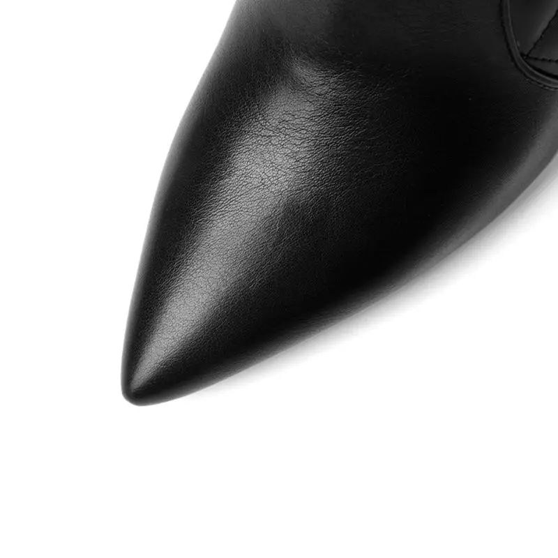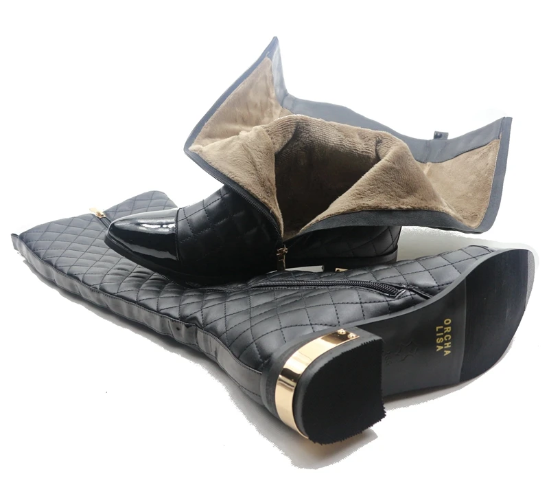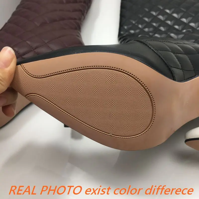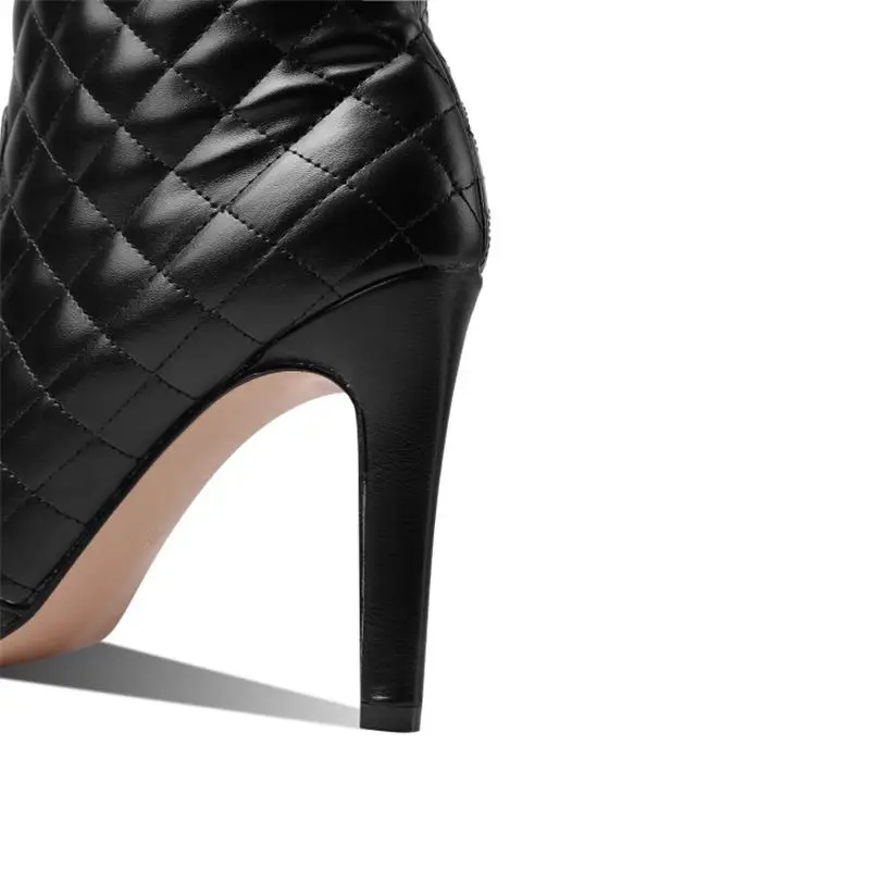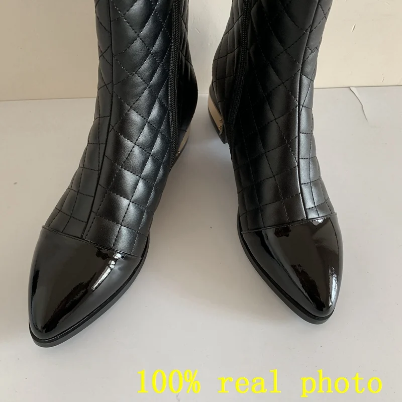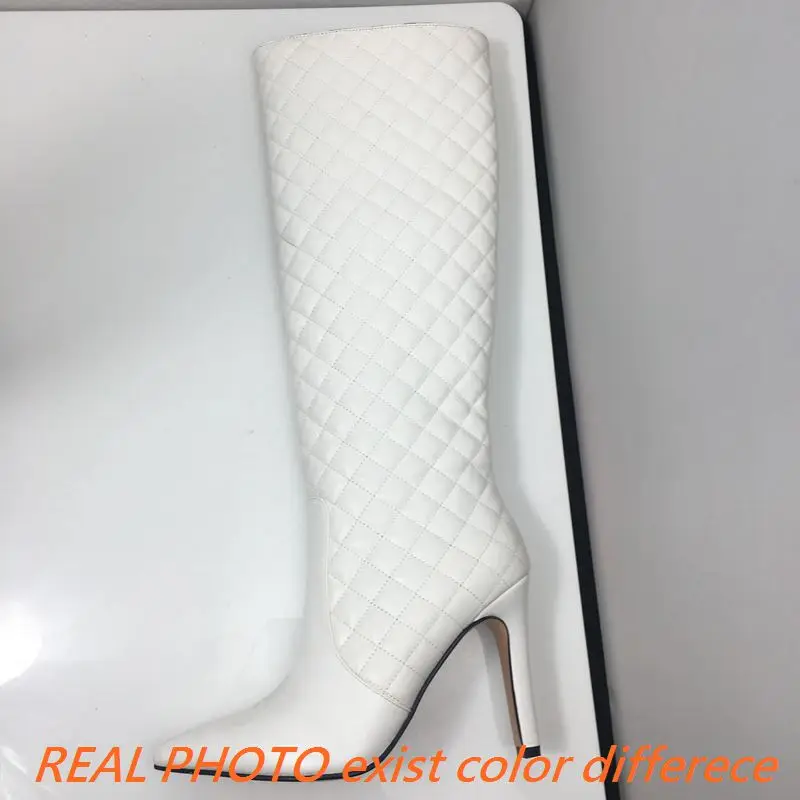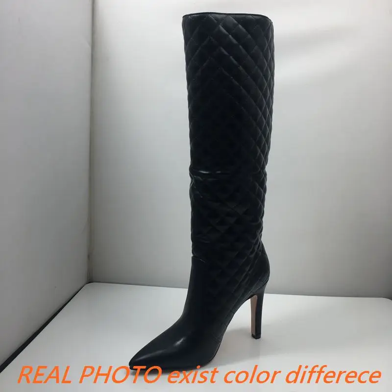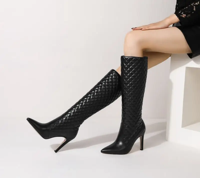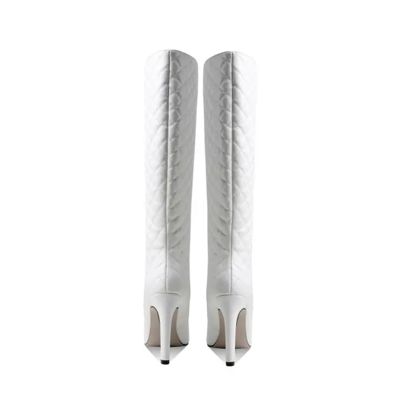 Quilted Genuine Leather Low Square Heel Knee High Boots