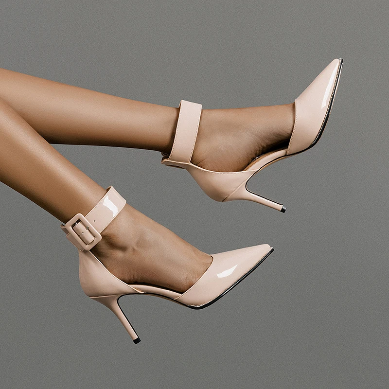 Perixir Women Thin High Heel 4.5cm Women's work shoes with ankle straps Black Patent Leather Profession New Women Shoes CCB-024
