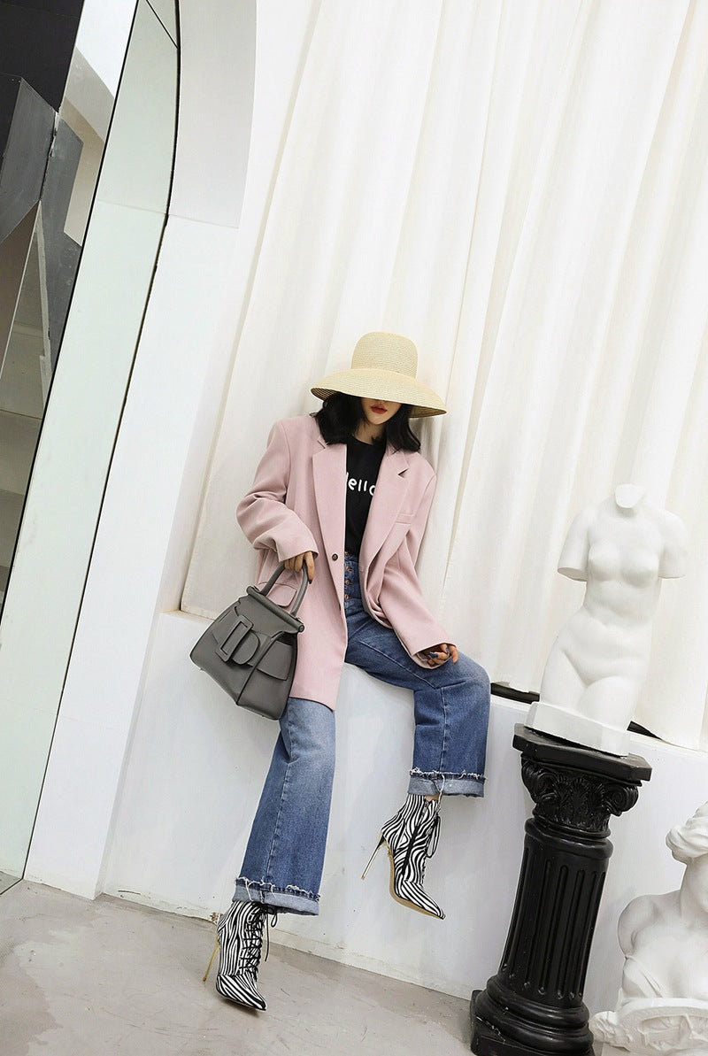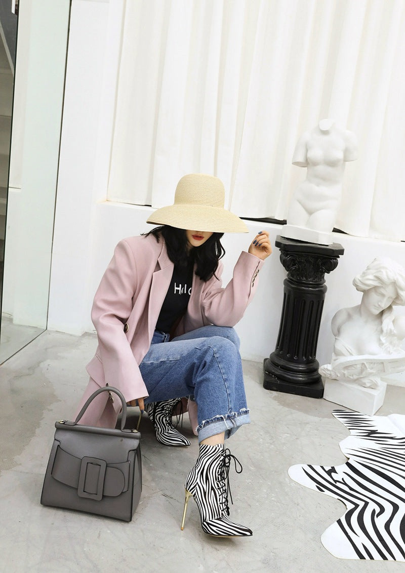 Zebra Print Women's Lace-Up Pointed Toe Gold Metal Stiletto Heel Martin Ankle Boots
