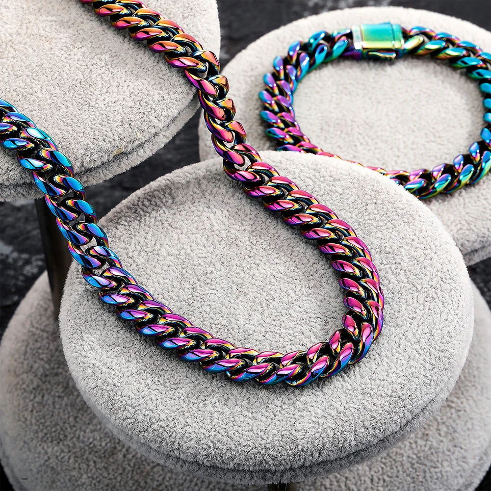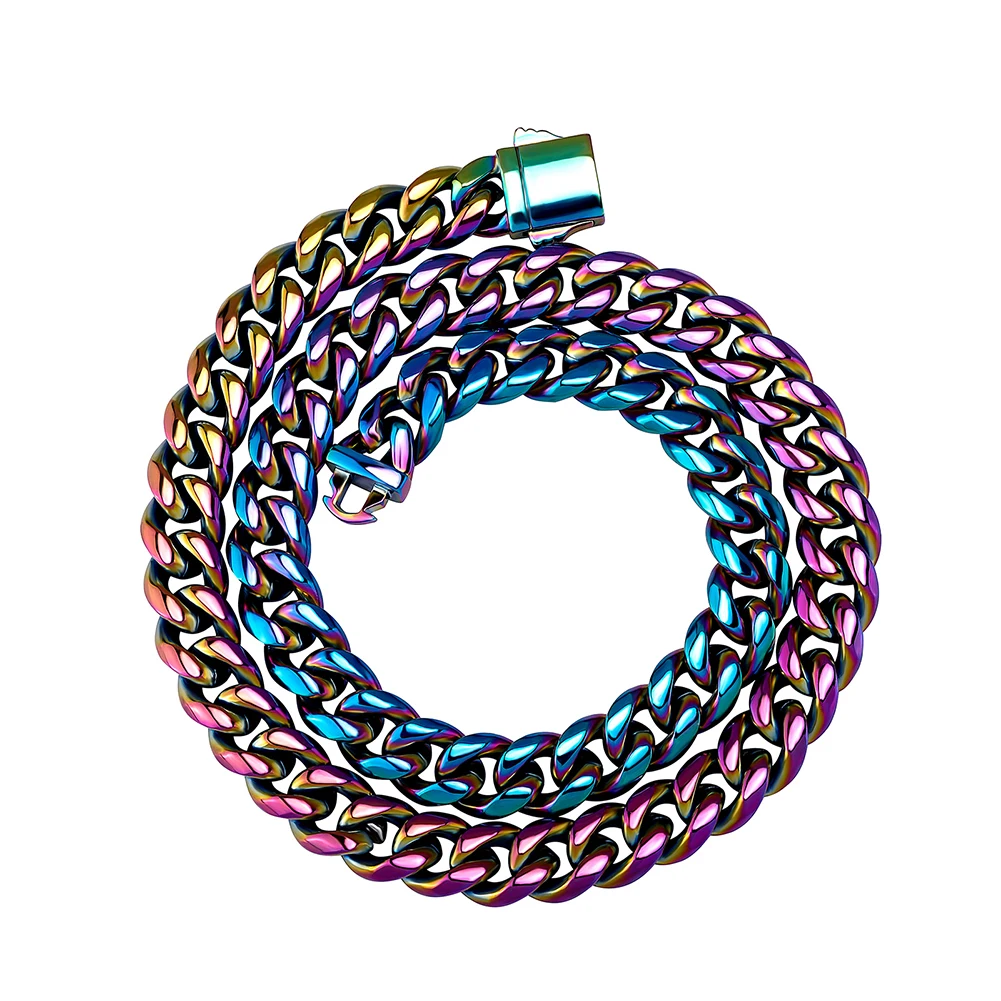 Stainless Steel Hip Hop Multi-Colored Cuban Chain