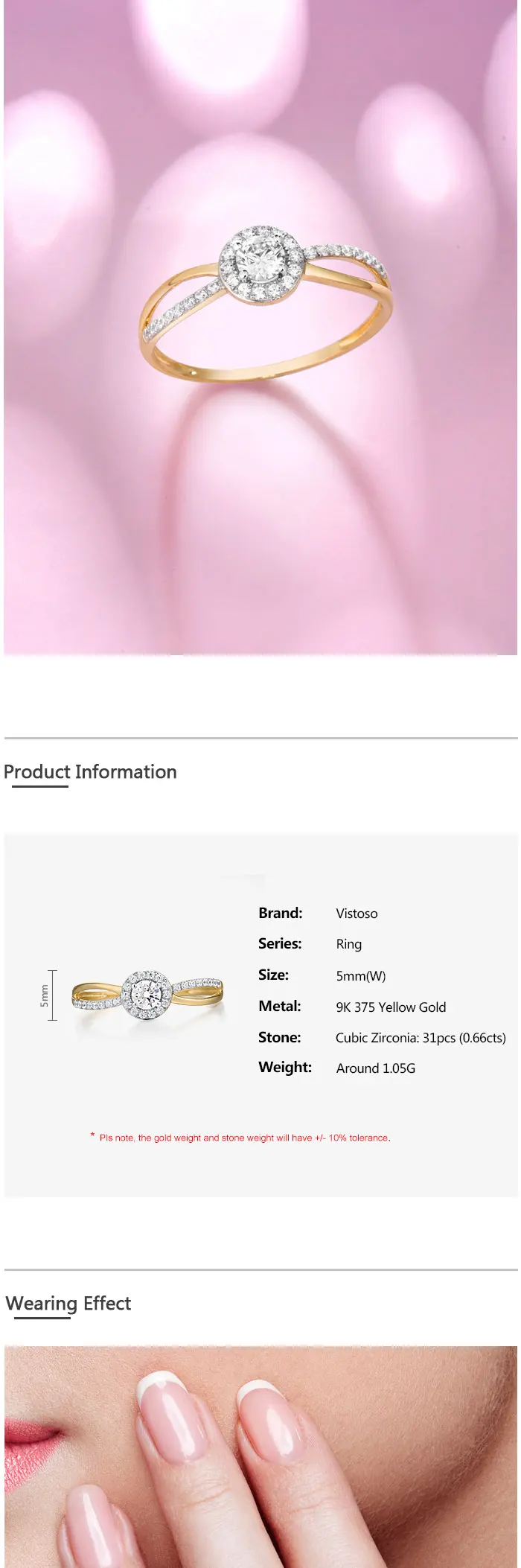 9K 375 Yellow Gold Ring Sparkling White CZ Gold Engagement Rings