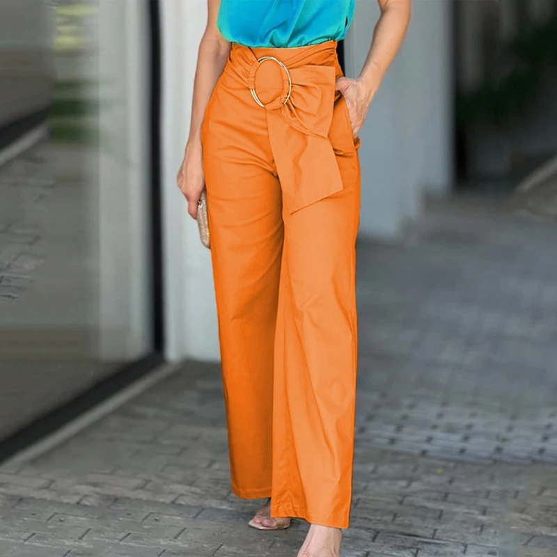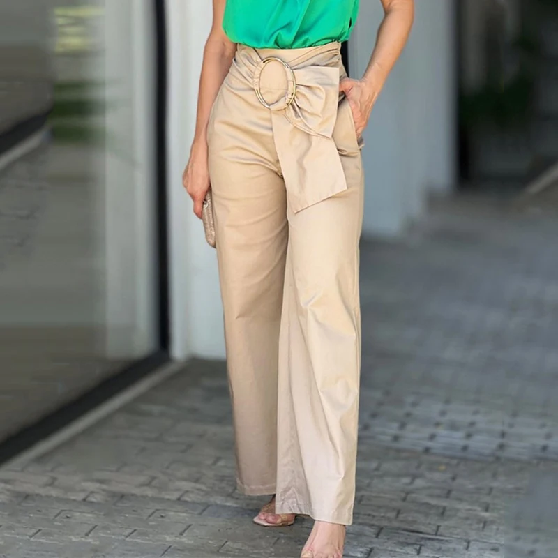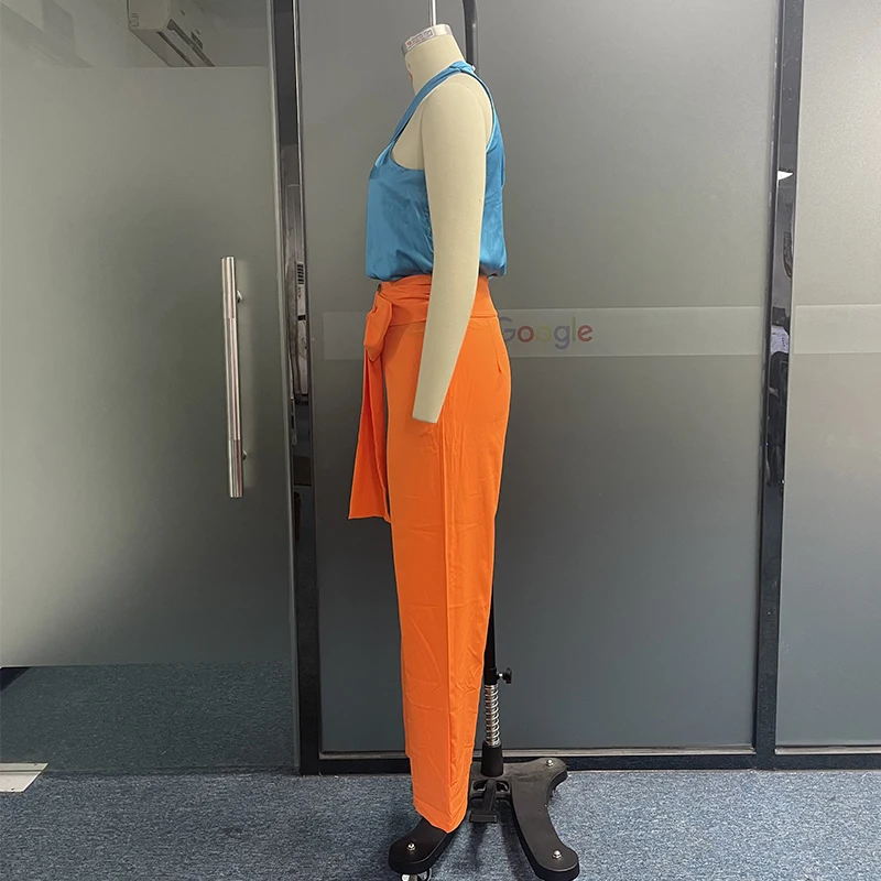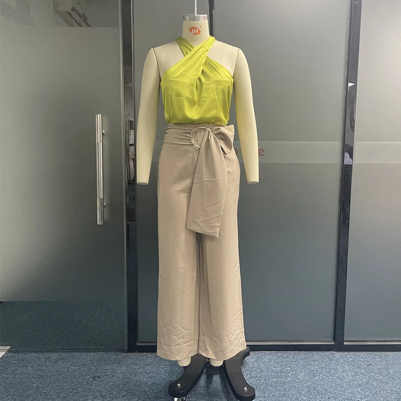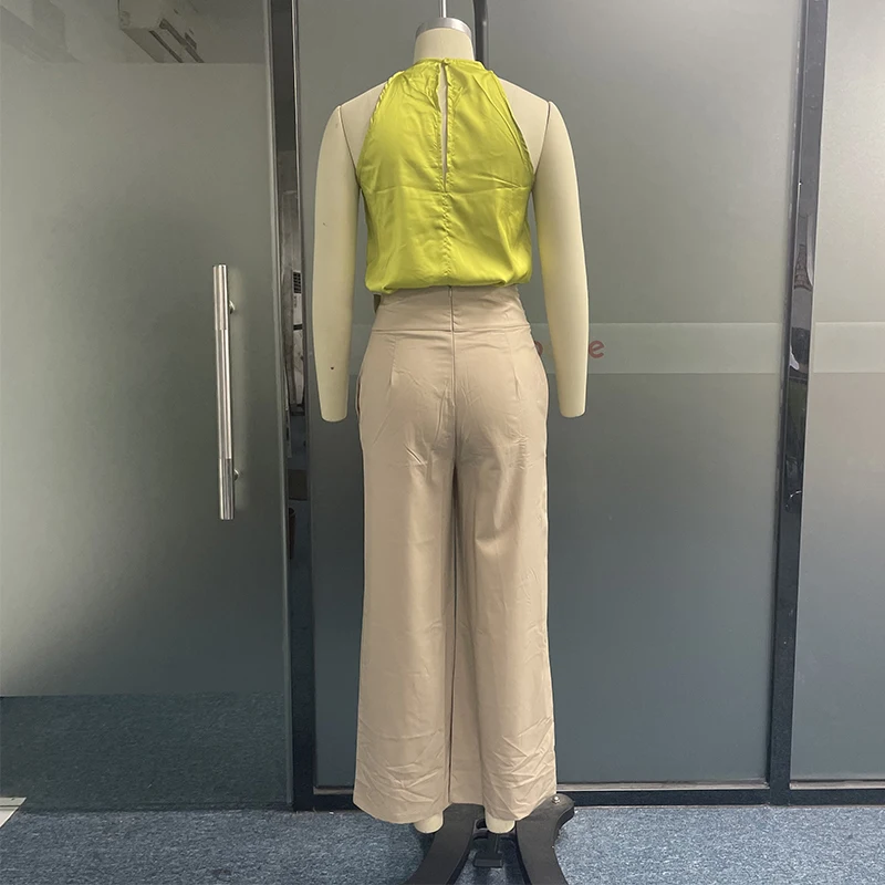 Halterneck Sleeveless Satin Top + Loose Wide Leg Long Pants 2-Piece Set