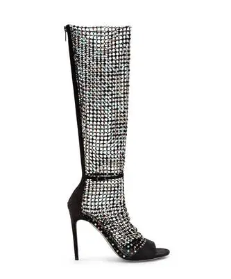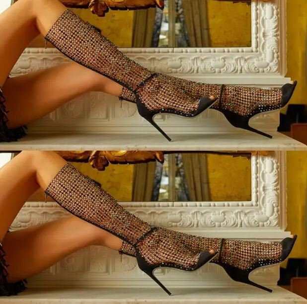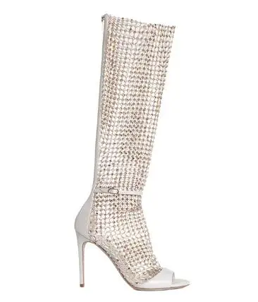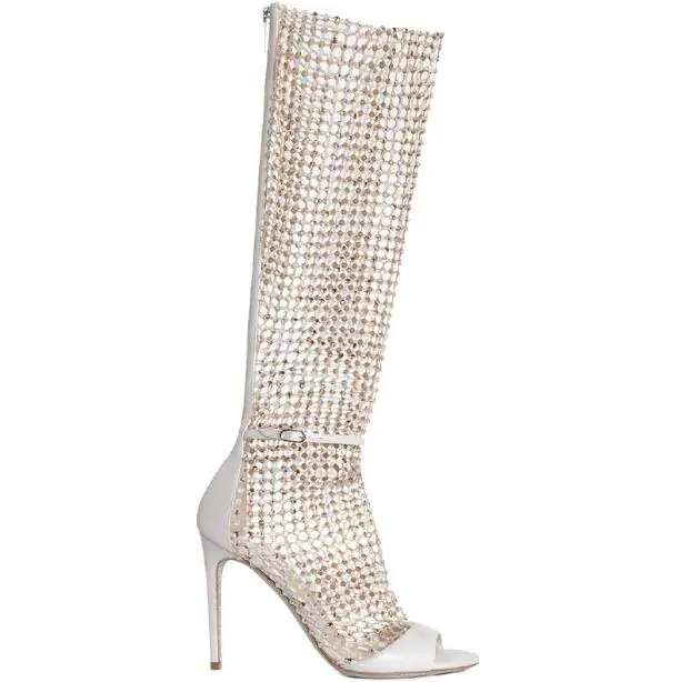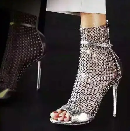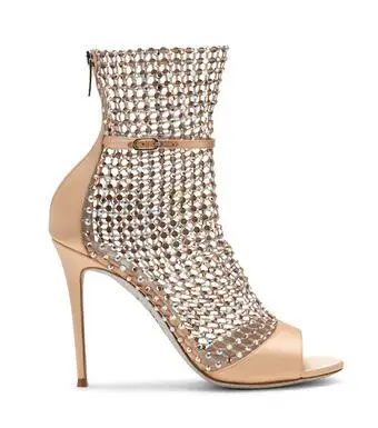 Gladiator Crystal Peep Toe Rhinestone Bling Mesh Ankle Boots
