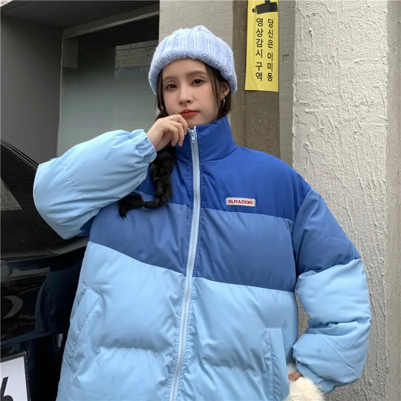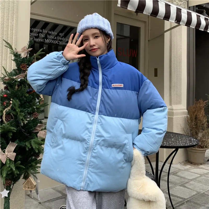 Women's Gradient Colorblock Cotton Padded Down Puffer Jacket