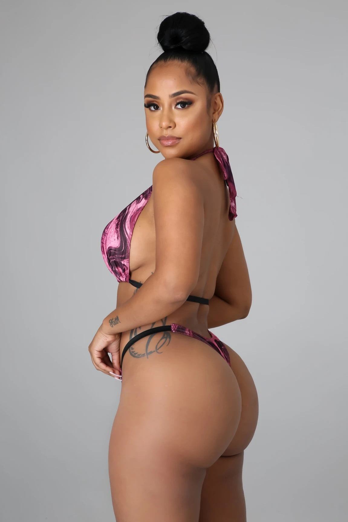 Swirl Print Hollow-Out Women's Thong Bikini Swimsuit w/ Matching Leggings 3-Piece Set