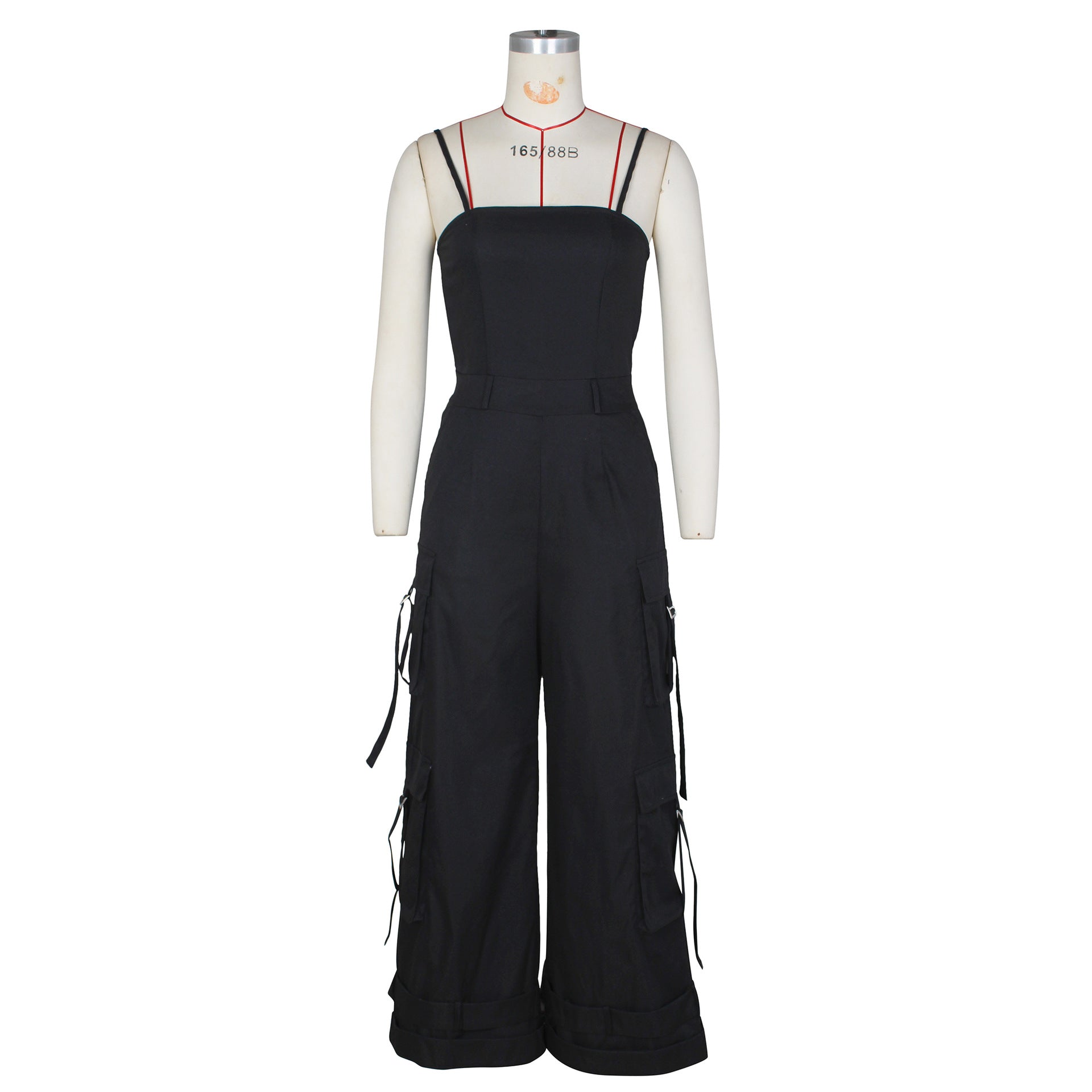 Women's Tube Top Multi-pocket Workwear Wide Leg Jumpsuit
